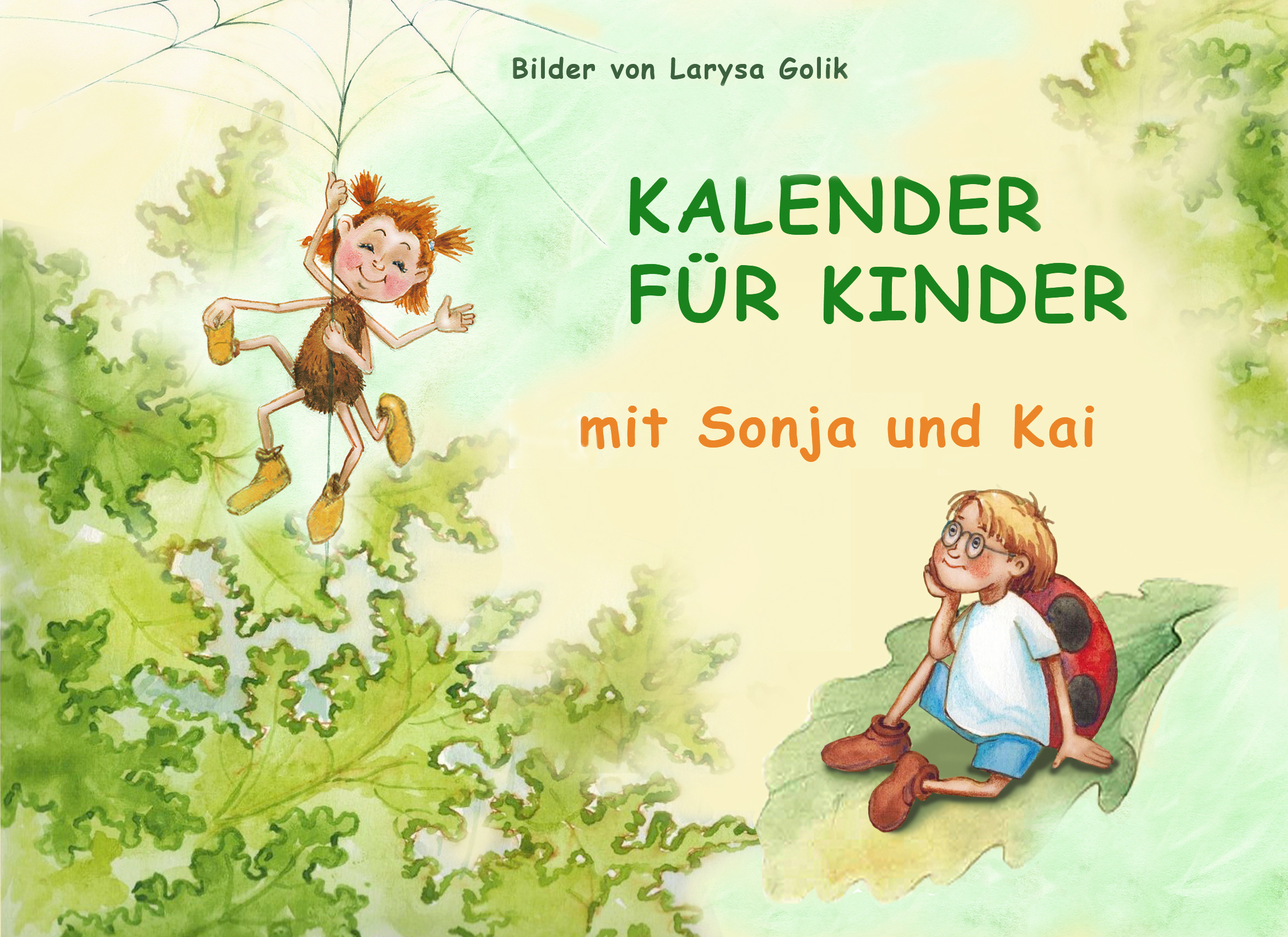 Herzlichen Dank an alle, die mein Bilderbuch "Sonjas Abenteuer" gekauft und gelesen haben! Wenn Sie ein besonderes Geschenk suchen, dann schauen Sie doch mal auf meinen Kalender für Kinder. Auf den Bildern des Kalenders sind die kleine Spinne Sonja und ihr Freund Marienkäfer Kai. Sie können mit Sonja und Kai durch alle Jahreszeiten gehen und sehen, wie sie zusammen spielen.